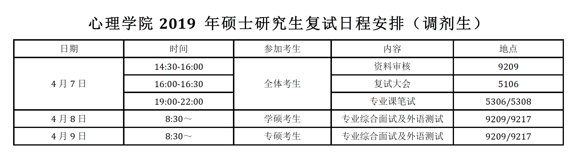 三、 复试日程安排