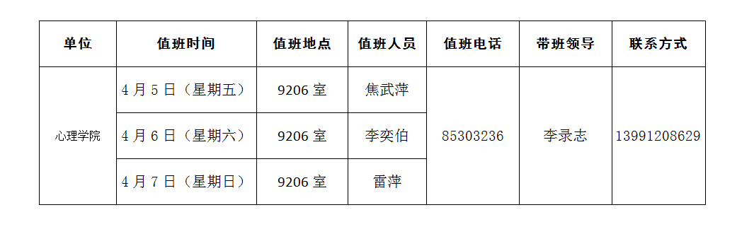 来利国际旗舰厅2019年清明节值班安排表