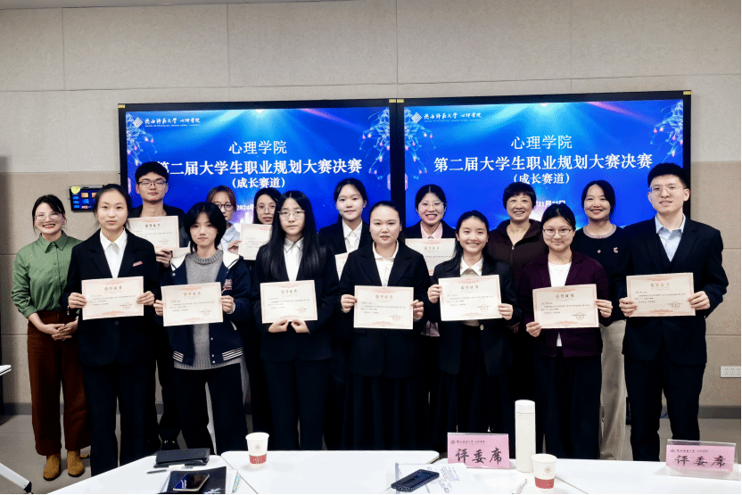 决赛共设主题陈述和评委提问两个环节。比赛过程中,参赛选手从职业初心、岗位认知、胜任能力、未来规划等方面展示自己对未来职业生涯的认知与规划,评委结合选手个人陈述,针对职业规划与求职过程中的实际问题展开提问。比赛结束,评委翟丽江、秦艳霄分别对两个赛道进行总结点评。两个赛道分别评出一、二、三等奖和优秀奖各3名,由评委老师为获奖选手颁发荣誉证书并合影留念。