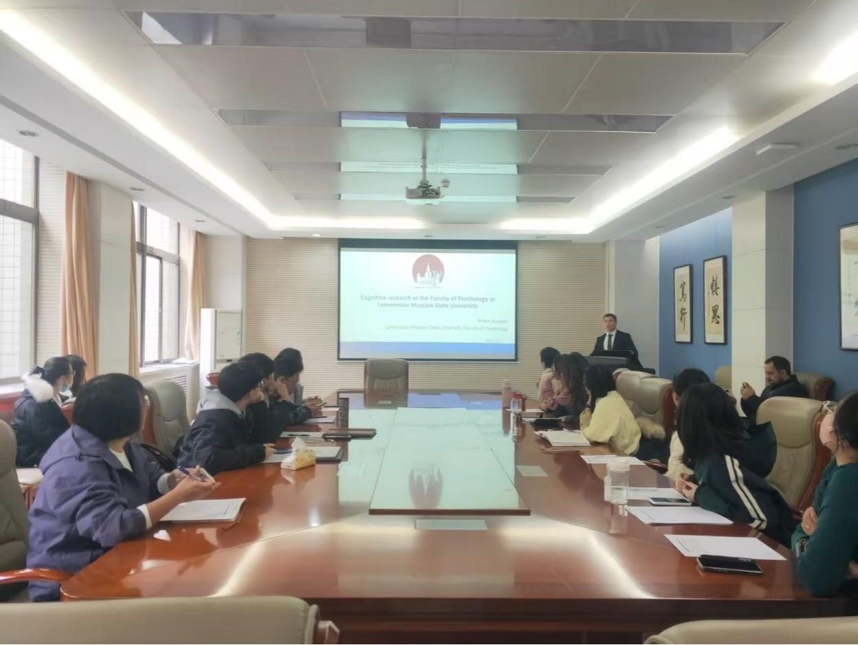 第二场讲座由阿尔乔姆·科瓦廖夫副教授带来,主题为《莫斯科国立大学心理学系认知过程研究方法》。他围绕自身研究方向,重点介绍了该校在认知科学领域所采用的跨学科研究路径,包括神经科学、眼动追踪与虚拟现实技术的融合应用。结合注意力、工作记忆等经典课题,科瓦廖夫副教授生动展示了其团队在认知负荷调控、老年认知干预等方面的前沿成果,为在座师生呈现了现代心理学研究方法的实践价值。
