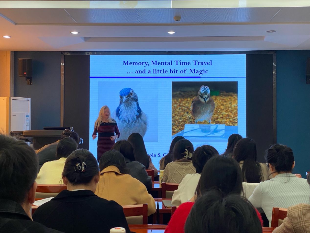 10月28日下午,依托“111基地”,英国剑桥大学比较认知学教授、英国皇家学会院士尼可拉·克莱顿(Nicola Clayton)应邀于雁塔校区教学九楼9209作“Embodied Cognition: Thinking with Feathers and Tentacles(具身认知:以羽毛与触手思考)”学术讲座,由李彩娜教授主持。