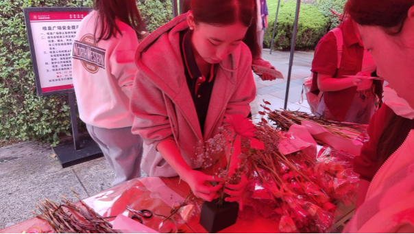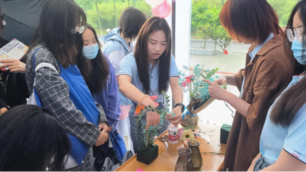 向阳心田,花艺体验。同学们在完成上述两项素质拓展活动后,即可领取花束,学习插花,并将插好的花束自行保存。